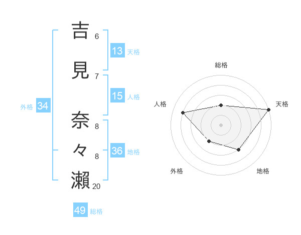 吉見 奈々瀨さんの天格は13画の5点!