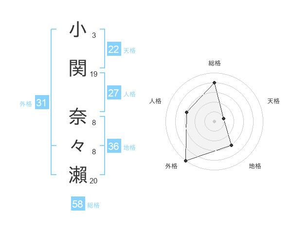 小関 奈々瀨さんの総格は58画の4点