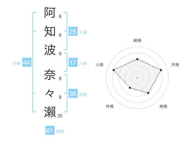 阿知波 奈々瀨さんを姓名の画数から五運を鑑定