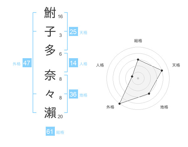 鮒子多 奈々瀨さんの総格は61画の3点!