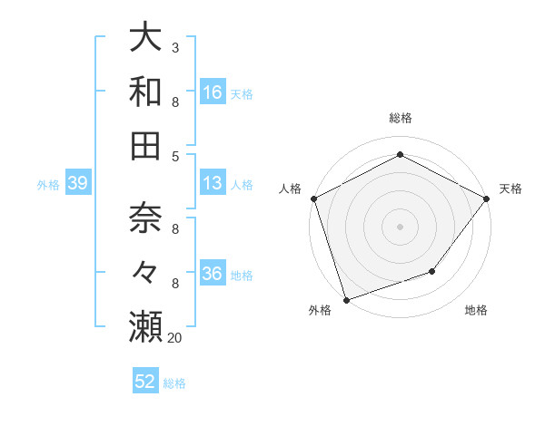 大和田 奈々瀬さんを姓名の画数から五運を鑑定