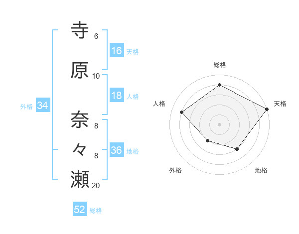 寺原 奈々瀬さんの天格は16画の5点!