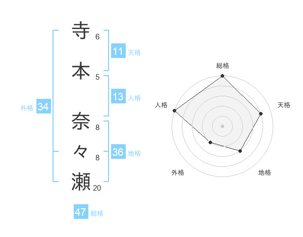 寺本 奈々瀬さんを姓名の画数から五運を鑑定