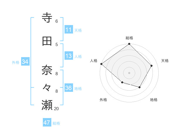 寺田 奈々瀬さんを姓名の画数から五運を鑑定