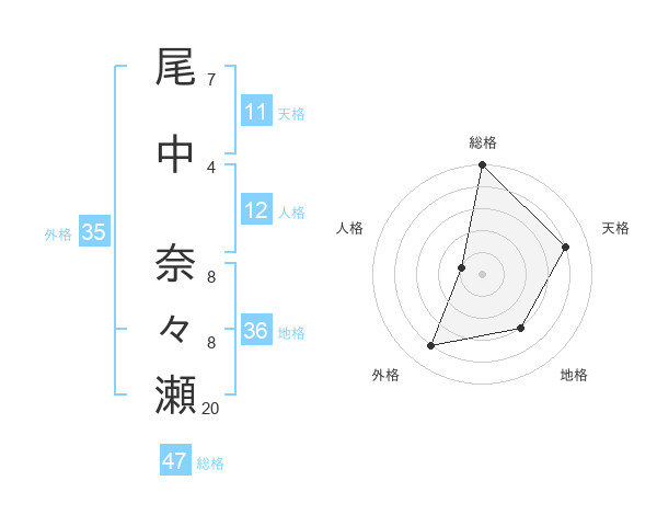 尾中 奈々瀬さんの総格は47画の5点!