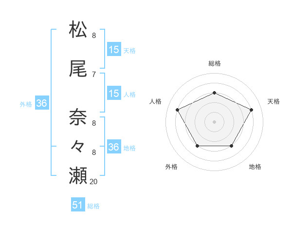 松尾 奈々瀬さんの総格は51画の3点!