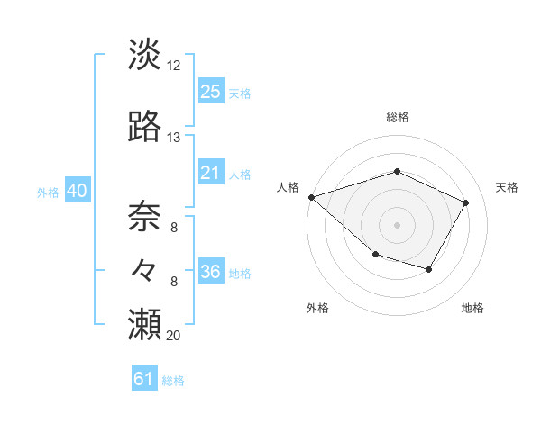 淡路 奈々瀬さんを姓名の画数から五運を鑑定