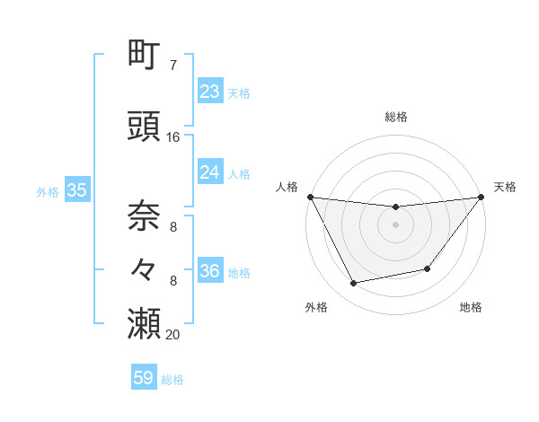 町頭 奈々瀬さんの天格は23画の5点!