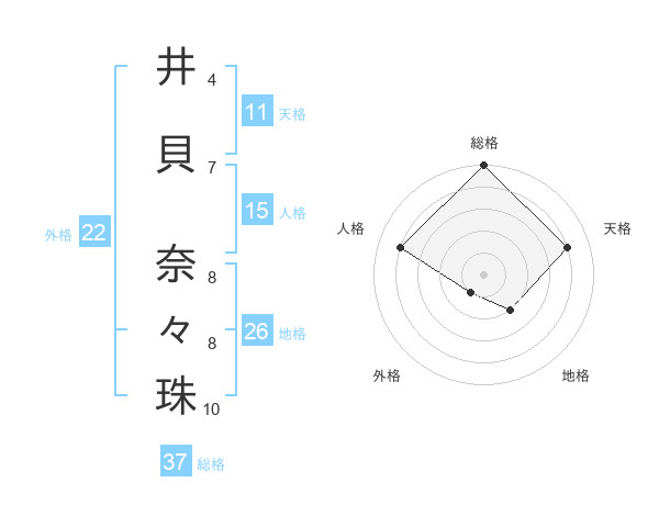 井貝 奈々珠さんの総格は37画の5点!