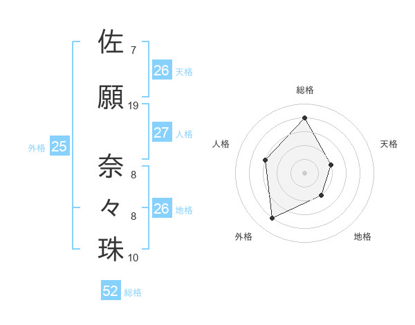 佐願 奈々珠さんを姓名の画数から五運を鑑定