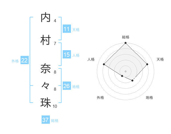 内村 奈々珠さんを姓名の画数から五運を鑑定