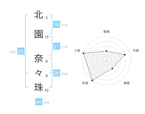 北園 奈々珠さんの天格は18画の4点!