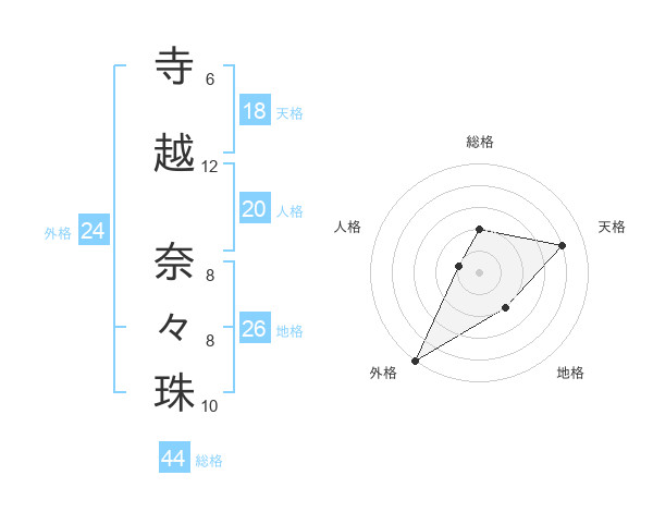 寺越 奈々珠さんの天格は18画の4点!