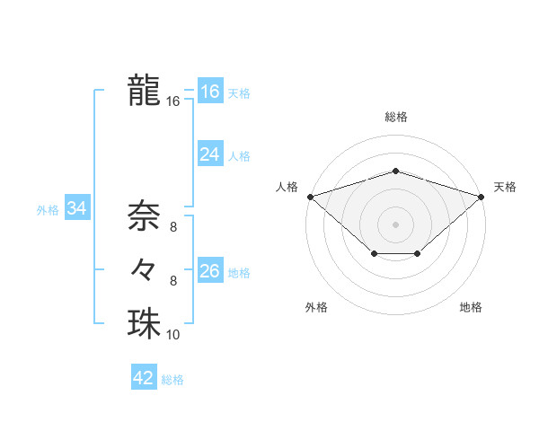 龍 奈々珠さんの総格は42画の3点!