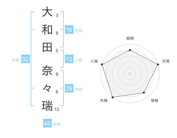 大和田 奈々瑞さんを姓名の画数から五運を鑑定