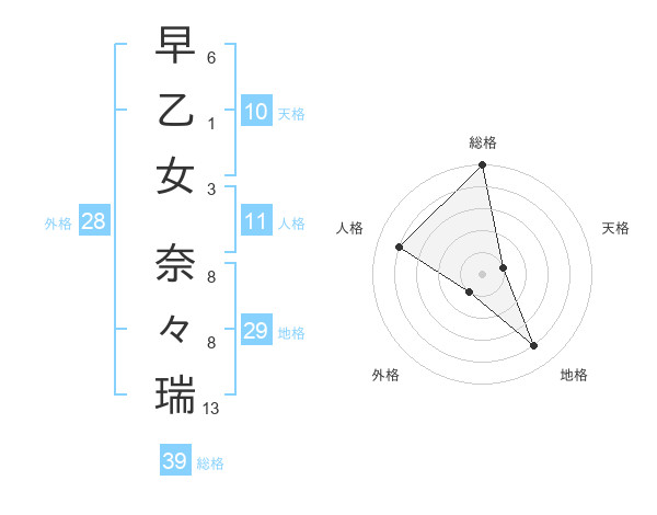 早乙女 奈々瑞さんを姓名の画数から五運を鑑定