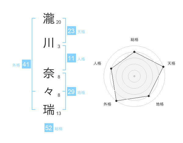 瀧川 奈々瑞さんの総格は52画の4点!