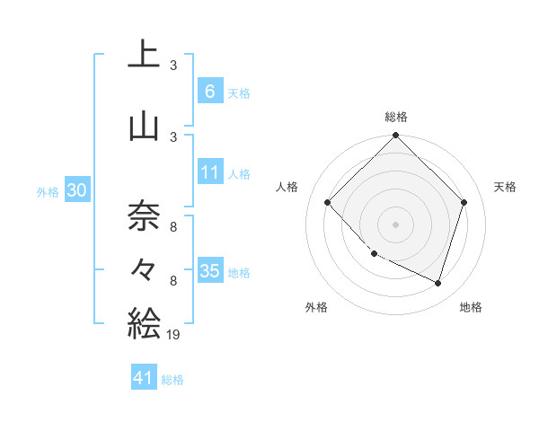 上山 奈々絵さんの総格は41画の5点!
