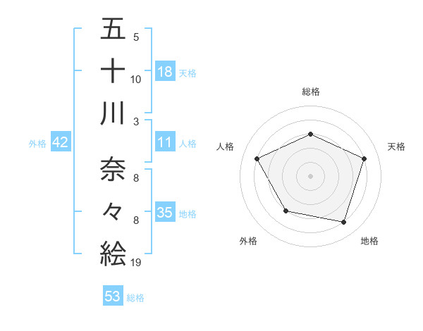 五十川 奈々絵さんを姓名の画数から五運を鑑定