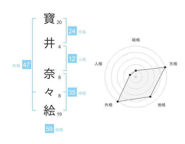 寶井 奈々絵さんを姓名の画数から五運を鑑定