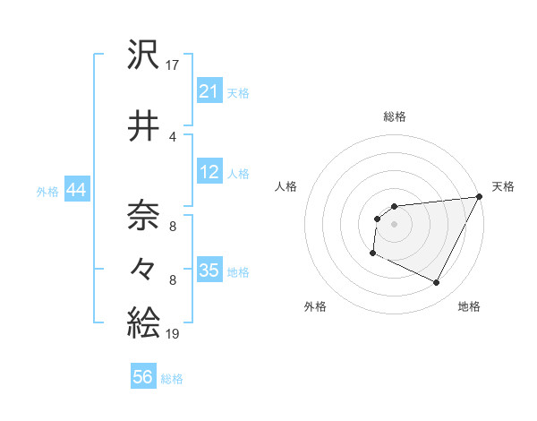 沢井 奈々絵さんの天格は21画の5点!