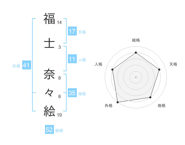 福士 奈々絵さんの総格は52画の4点!