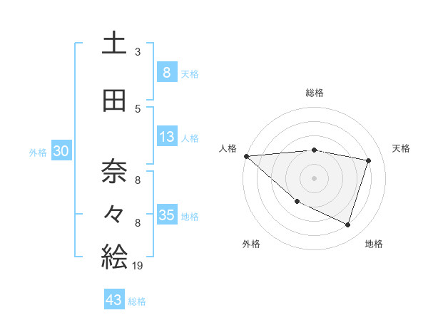 土田 奈々絵さんを姓名の画数から五運を鑑定