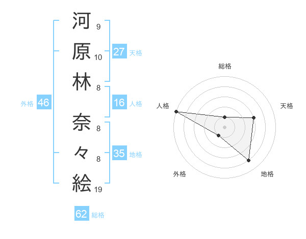 河原林 奈々絵さんを姓名の画数から五運を鑑定