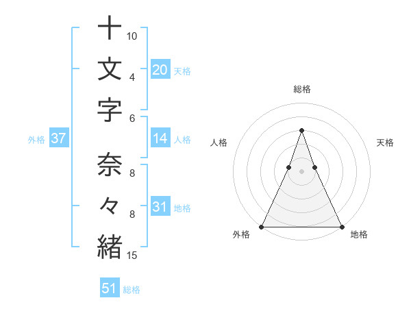 十文字 奈々緒さんの総格は51画の3点!