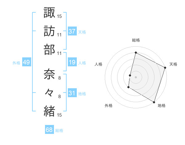 諏訪部 奈々緒さんの天格は37画の5点!