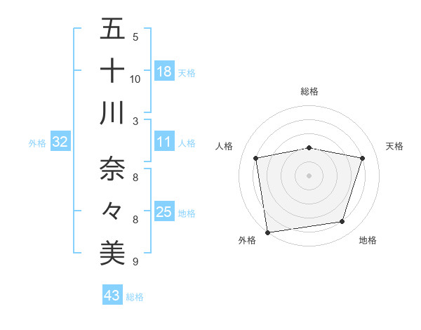五十川 奈々美さんを姓名の画数から五運を鑑定