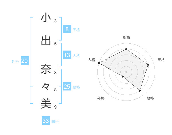 小出 奈々美さんを姓名の画数から五運を鑑定
