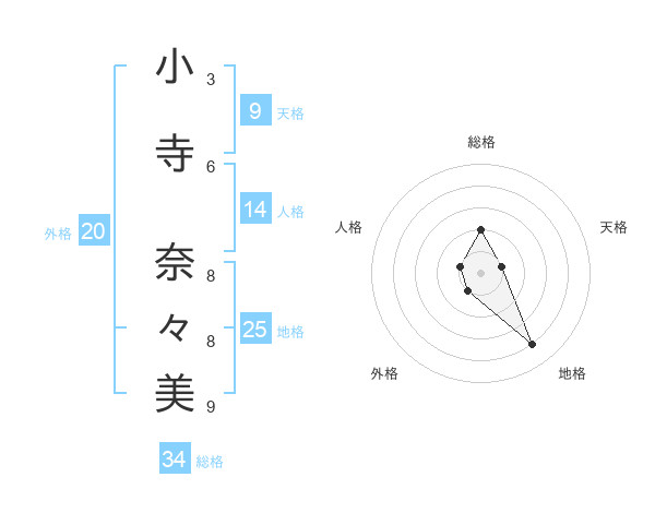 小寺 奈々美さんを姓名の画数から五運を鑑定