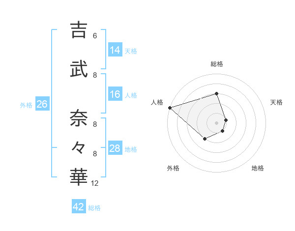 吉武 奈々華さんを姓名の画数から五運を鑑定