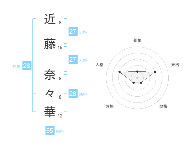 近藤 奈々華さんを姓名の画数から五運を鑑定