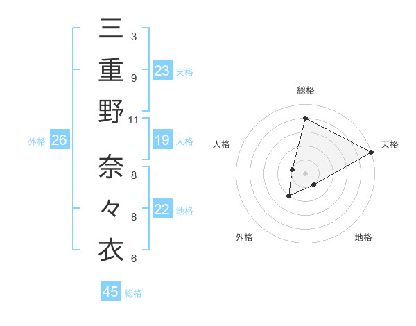 三重野 奈々衣さんの総格は45画の4点!