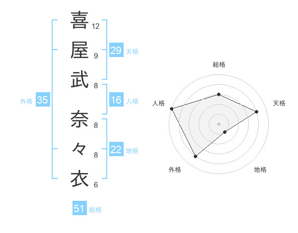 喜屋武 奈々衣さんを姓名の画数から五運を鑑定