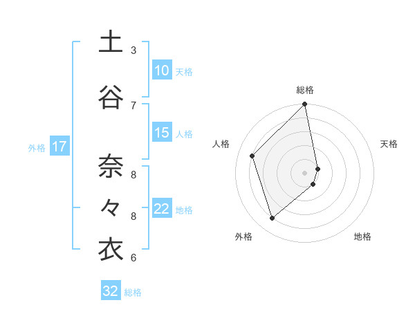 土谷 奈々衣さんを姓名の画数から五運を鑑定