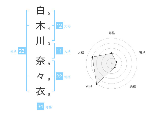 白木川 奈々衣さんを姓名の画数から五運を鑑定