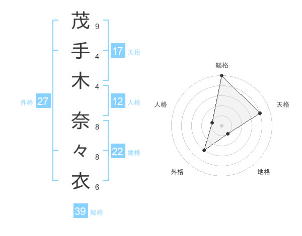 茂手木 奈々衣さんを姓名の画数から五運を鑑定