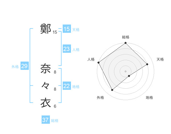 鄭 奈々衣さんを姓名の画数から五運を鑑定