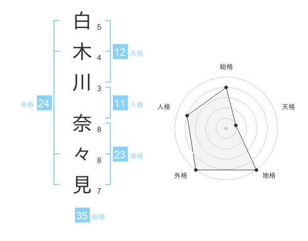 白木川 奈々見さんを姓名の画数から五運を鑑定