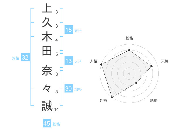 上久木田 奈々誠さんの総格は45画の4点