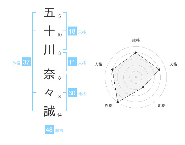 五十川 奈々誠さんを姓名の画数から五運を鑑定