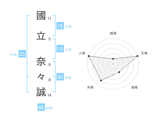 國立 奈々誠さんの天格は16画の5点!