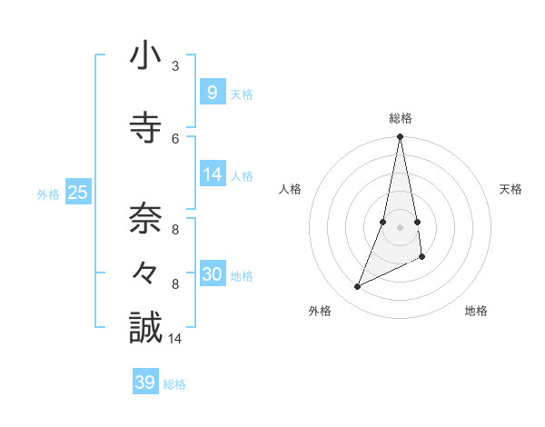 小寺 奈々誠さんの総格は39画の5点!