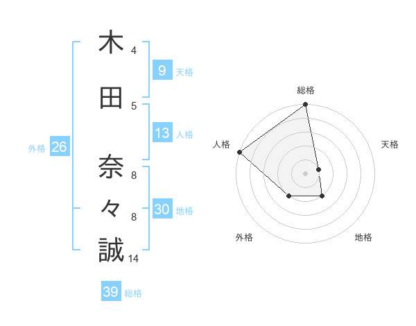 木田 奈々誠さんを姓名の画数から五運を鑑定