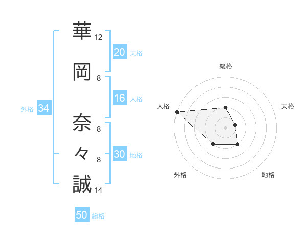華岡 奈々誠さんを姓名の画数から五運を鑑定