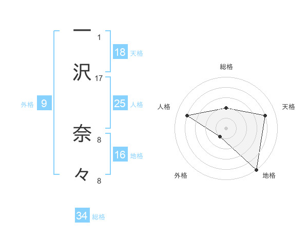 一沢 奈々さんを姓名の画数から五運を鑑定