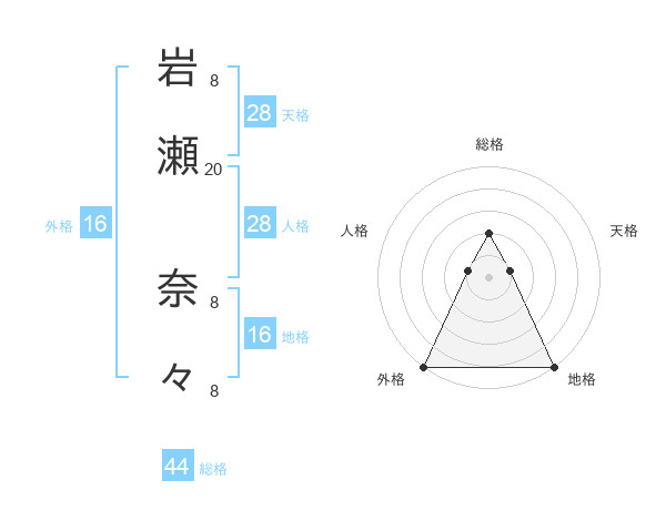 岩瀬 奈々さんの総格は44画の2点!